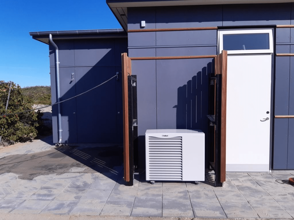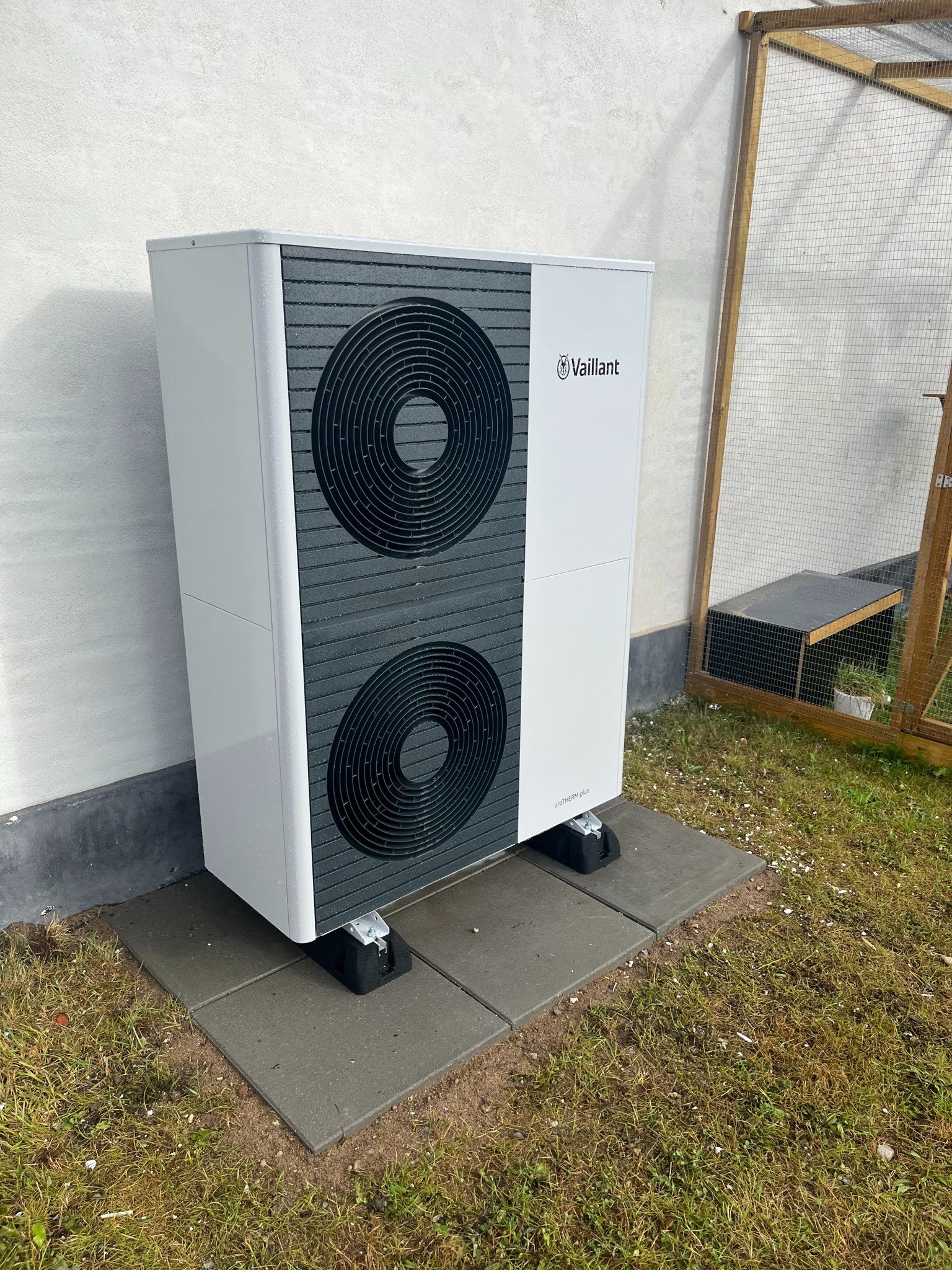 Varmepumper er luft-til-vand-anlæg som bruger naturens egne ressourcer til opvarmning af din bolig. Her bores der hul i væggen, hvor efter varmepumpen skal installeres på ydervæggen af huset og forbindes med varmtvandsbeholderens sammenslutning, herfra bruges varmen fra luften til opvarmning af vandet.